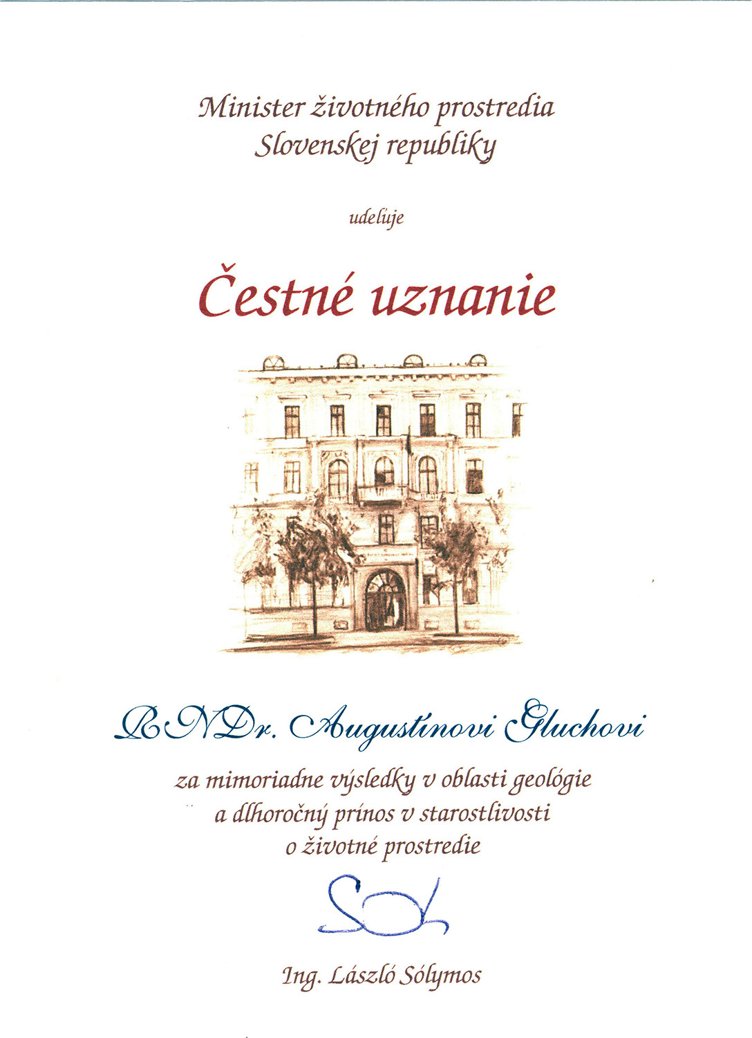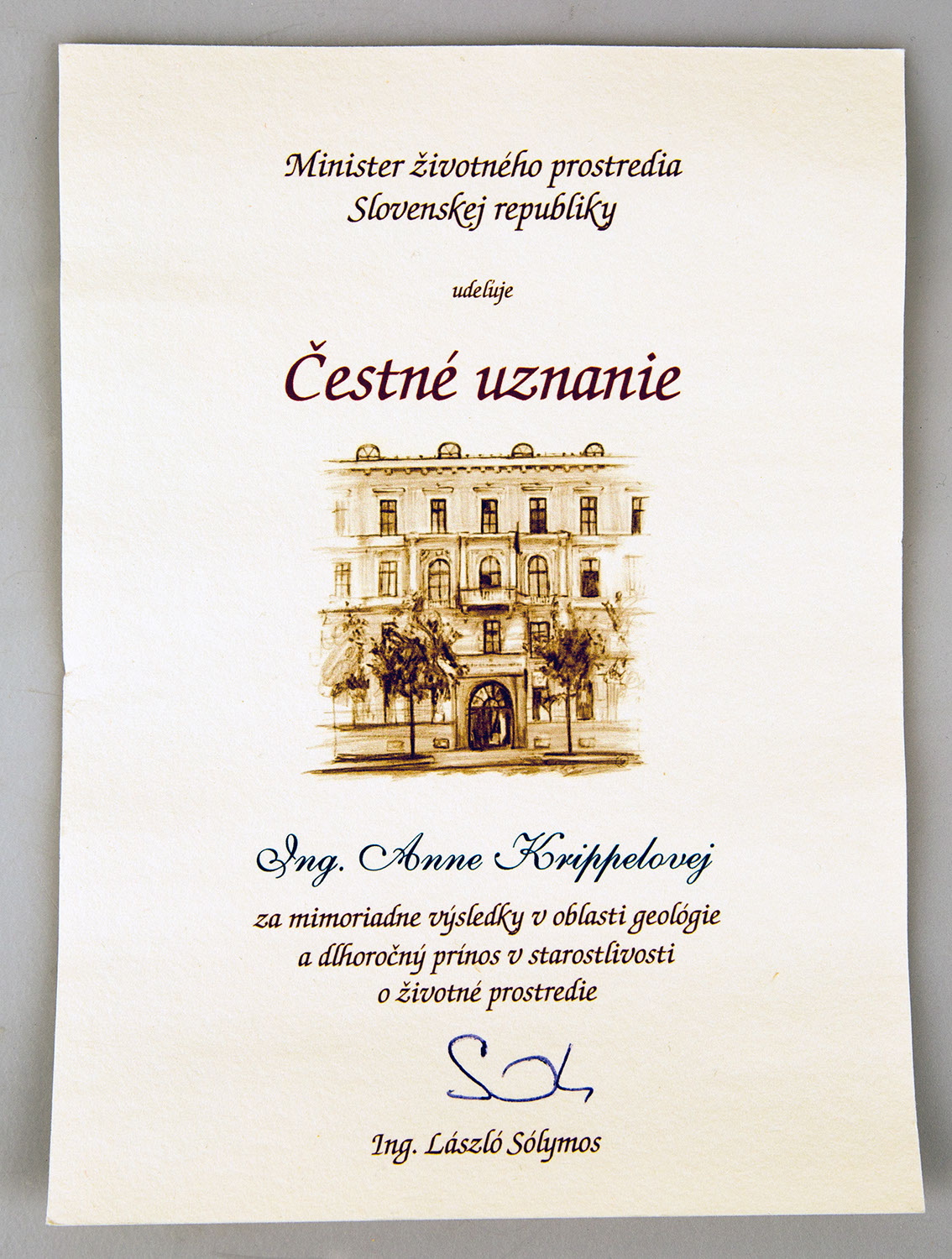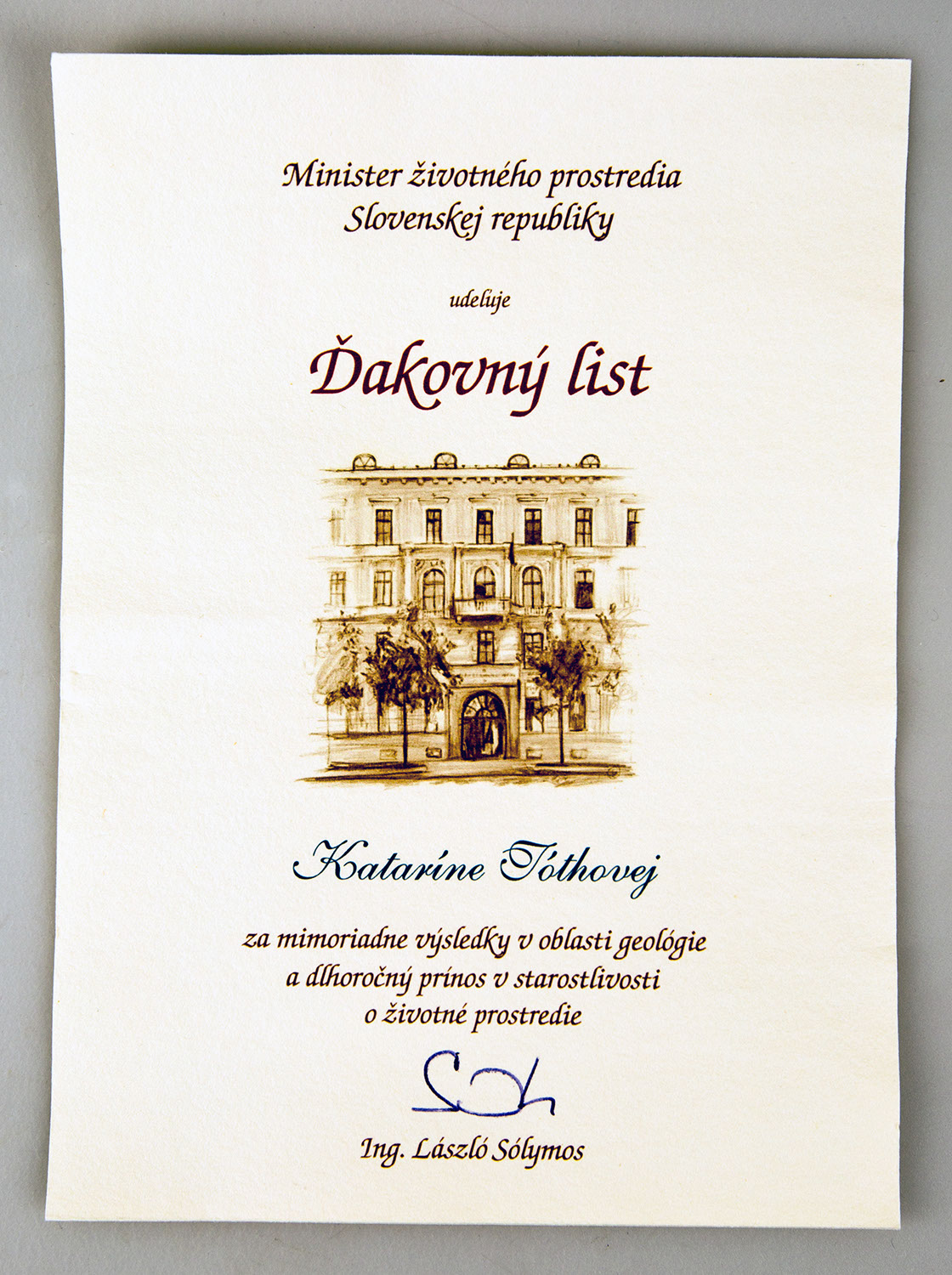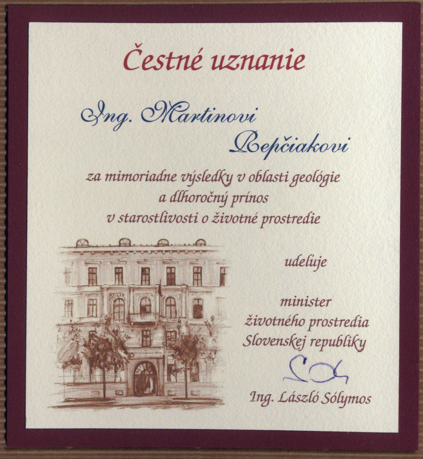 Čestné uznania a ďakovný list