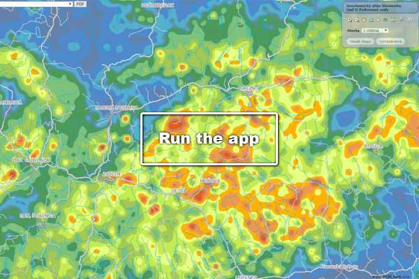 The application contains a set of 7 Geochemical Atlases: Groundwaters(1996), Forest Biomass (1996), Rocks (1999), Natural Rock Radioaktivity (1996), Soils (1999), Stream Sediments (1999) and Surface Waters (2015).