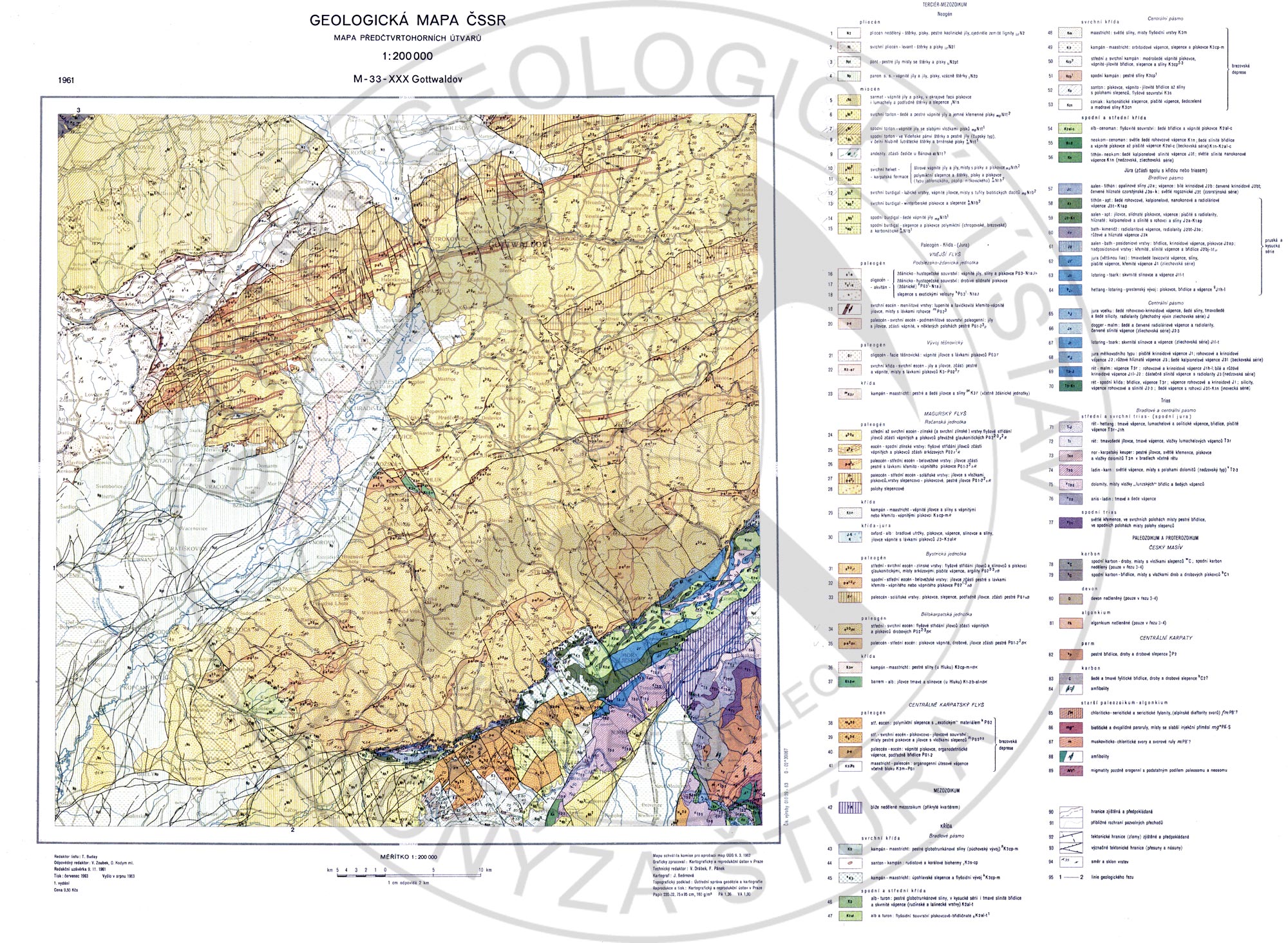 Buday, T., Benešová, E., Březina, Cicha, I., Čtyroký, P., Dornič, J., Dvořák, J., Eliáš, M., Hanzlíková, E., Jendrejáková, O., Kačura, G., Kamenický, J., Kheil, J., Köhler, E., Kullmanová, A., Maheľ, M., Matějka, A., Paulík, J., Salay, J., Scheibner, E., Scheibnerová, E., Stehlík, O., Urbánek, L., Vavŕínová, M. & Zelman, J. 1963: Vysvetlivky k prehľadnej geologickej mape Geologická mapa ČSSR, 1 : 200 000 M – 33 – XXX Gottwaldov. ÚÚG, Praha, 238 s.