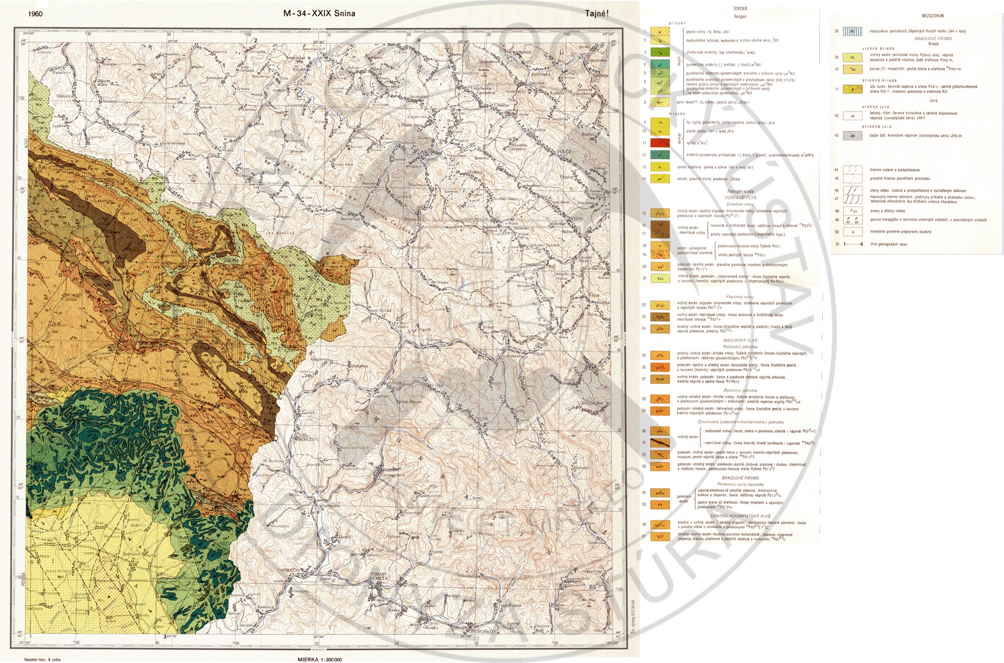 Leško, B. (ed.), Kuthan, M., , Pesl, V., Stránik, J. & Seneš, J., 1964: Geologická mapa ČSSR 1 : 200 000, M – 34 – XXIX, list Snina. ÚÚG Praha.