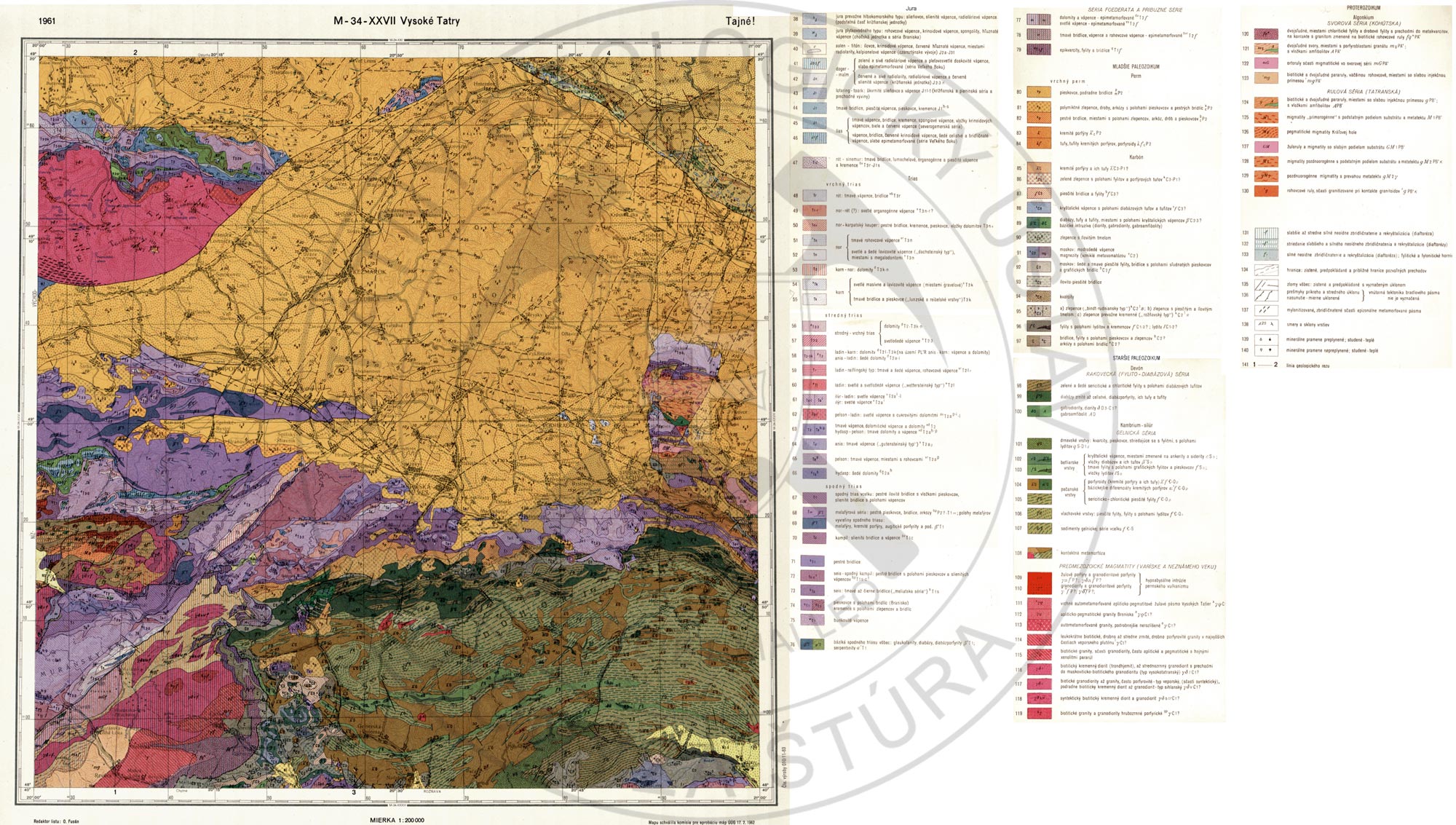 Fusán, O. (ed.), Bystrický, J., , Kamenický, L., Chmelík, F., Matějka, A. & Solołowski, S., 1964: Geologická mapa ČSSR 1 : 200 000, M – 34 – XXVII, list Vysoké Tatry. ÚÚG Praha.