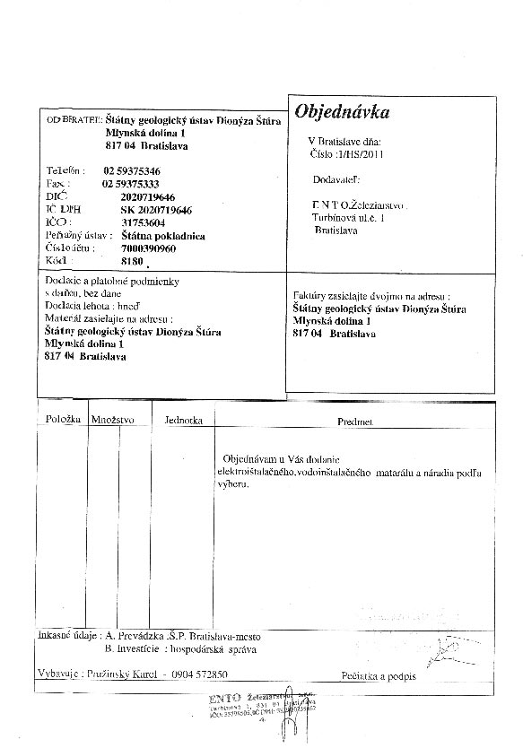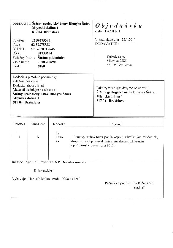 | 52/2011-H | 3. March 2011 | Juriga, Bratislava | spotrebný material | Zobraziť |