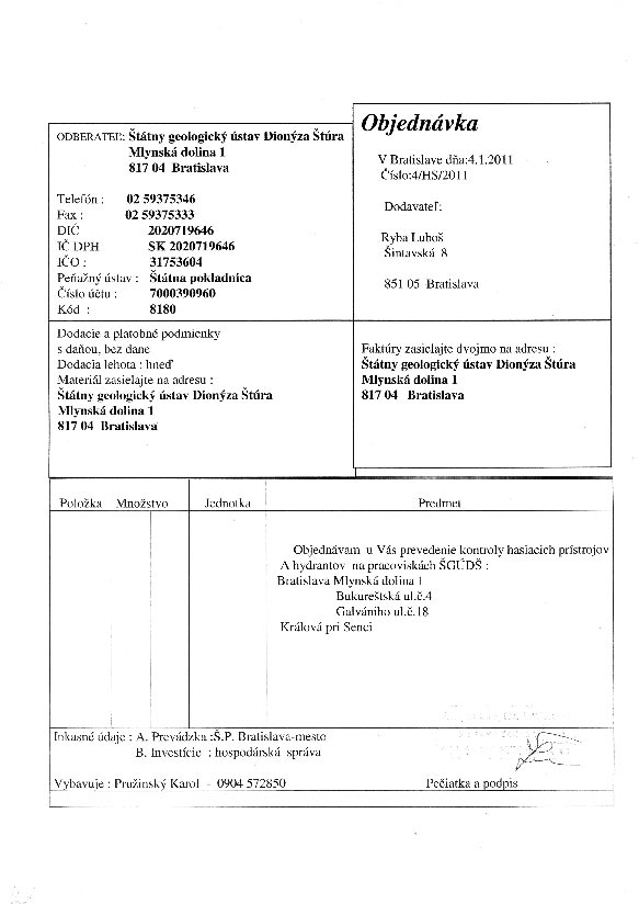 | 4/HS/2011 | 4. January 2011 | RYBA, Bratislava | kontrola HP | Zobraziť |