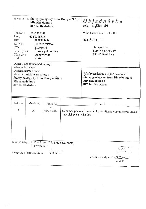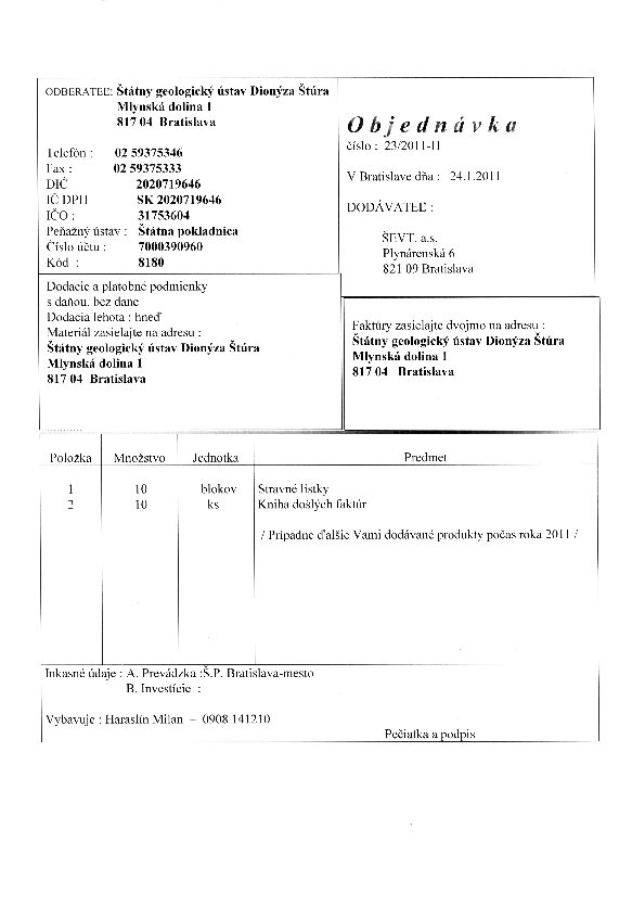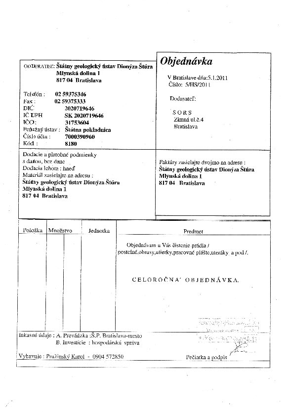 | 19/HS/2011 | 20. January 2011 | Juriga, Bratislava | kancelársky materiál | Zobraziť |