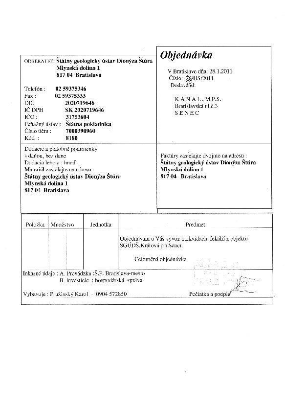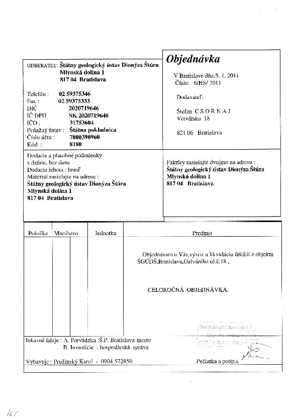 | 6/HS/2011 | 5. January 2011 | CSORNAJ, Bratislava | vývoz a likvidácia fekálií | Zobraziť |