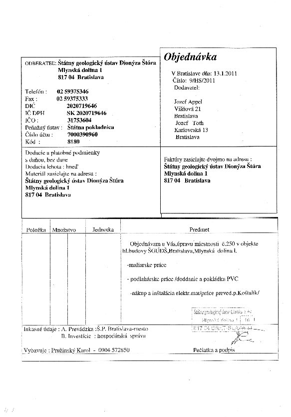 | 33/HS/2011 | 4. February 2011 | Jozef Appel, Bratislava | maliarske práce | Zobraziť |