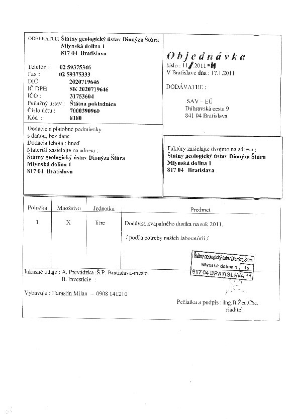 | 11/HS/2011 | 17. January 2011 | SAV - EÚ, Bratislava | dodanie kvapalného dusíka | Zobraziť |