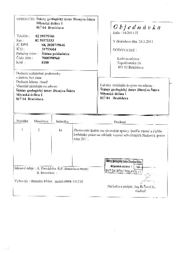 | 14/HS/2011 | 24. January 2011 | Kníhviazačstvo, Bratislava | výroba krabíc | Zobraziť |