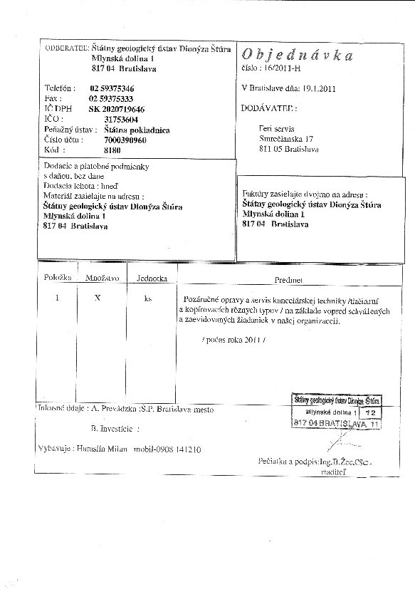 | 16/HS/2011 | 19. January 2011 | Feri servis, Bratislava | opravy kancelárskej techniky | Zobraziť |