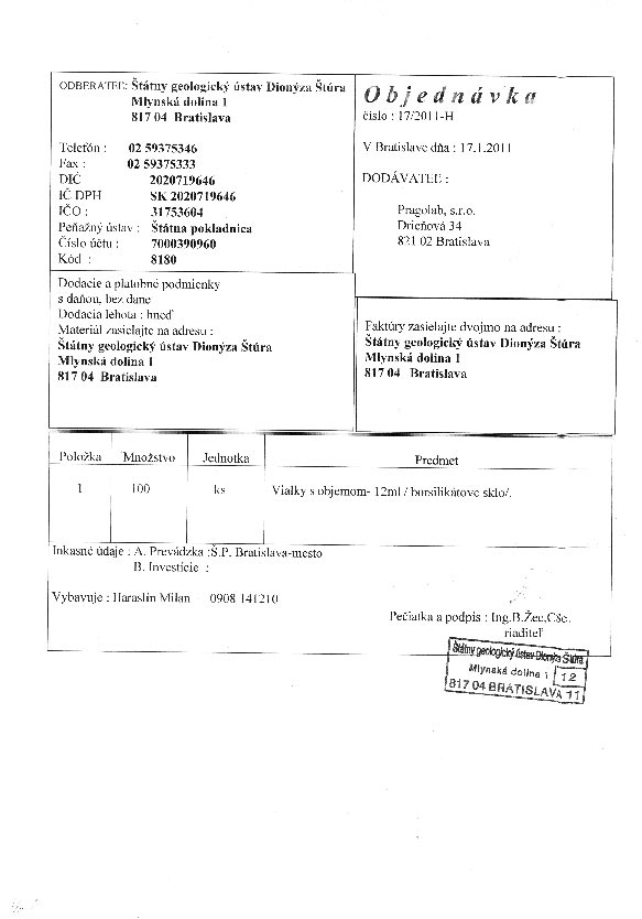 | 17/HS/2011 | 17. January 2011 | Pragolab, Bratislava | vialky (borsilikátové sklo) | Zobraziť |