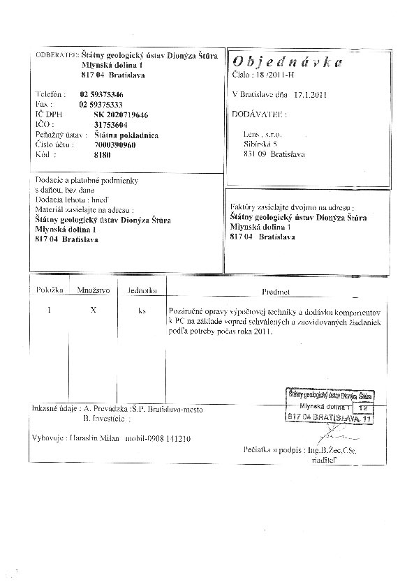 | 18/HS/2011 | 17. January 2011 | Lens, Bratislava | oprava výpočtovej techniky | Zobraziť |
