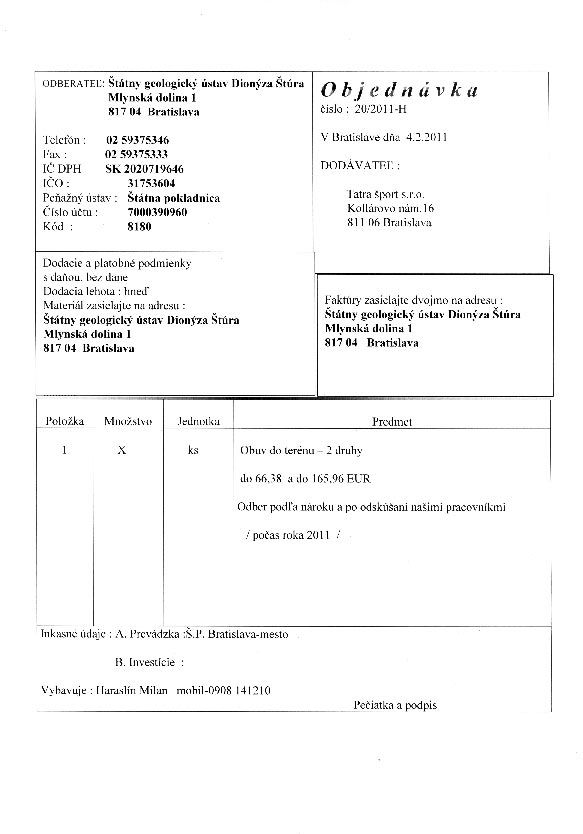 | 20/HS/2011 | 4. February 2011 | Tatra šport, Bratislava | terénna obuv | Zobraziť |
