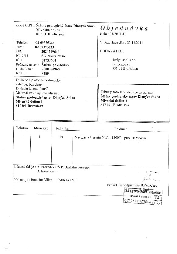 | 21/HS/2011 | 21. January 2011 | Juriga, Bratislava | navigácia Garmin NUVI | Zobraziť |