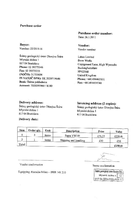 | 22/HS/2011 | 26. January 2011 | Labco, Limited GB | septa na vialky | Zobraziť |