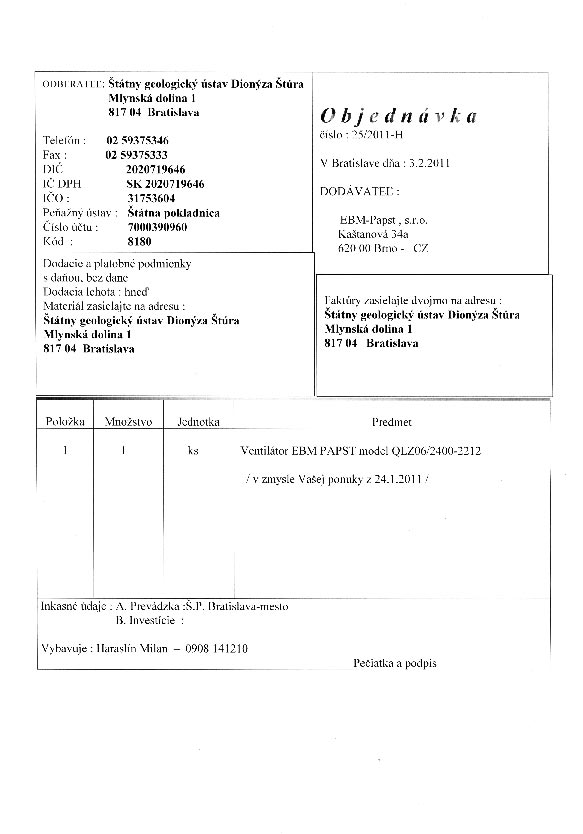 | 25/HS/2011 | 4. February 2011 | EBM-Papst, Bratislava | ventilátor EBM | Zobraziť |