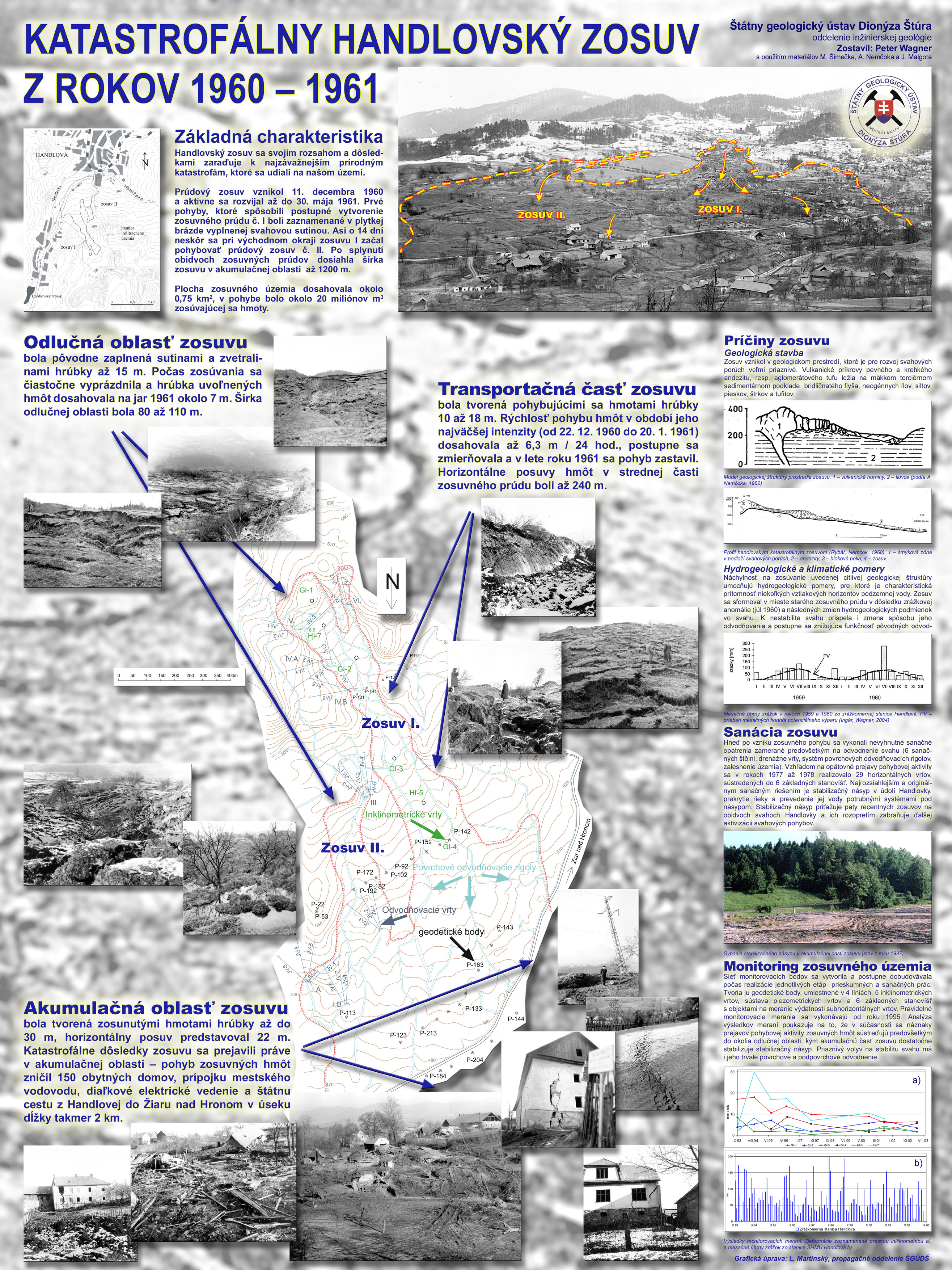 Za najhorší zosuv v histórii Slovenska sa považuje zosuv v Handlovej. Popis tohto zosuvu najdete na tomto plagáte.